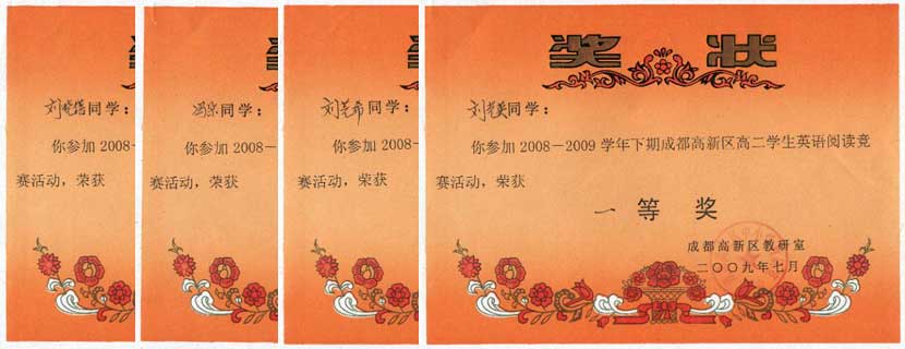 2009學年下期成都高新區高二學校英語閱讀競賽獲獎名單 |
