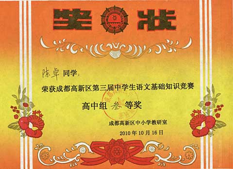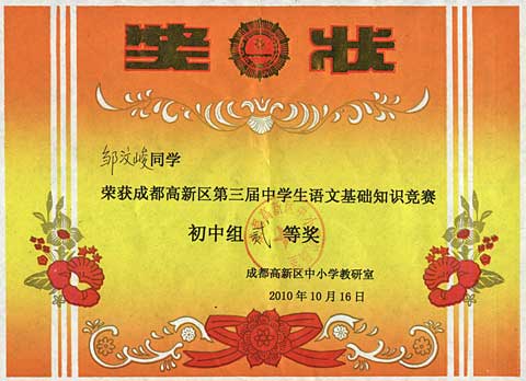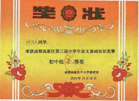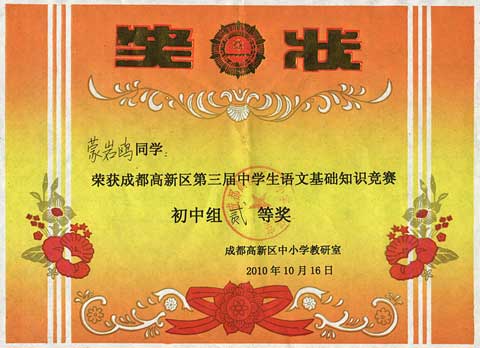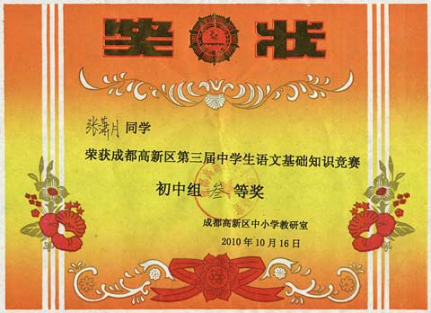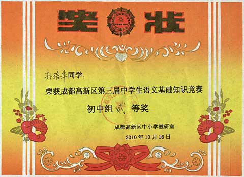美視學子在成都高新區第三屆中學生語文基礎知識競賽中獲獎
