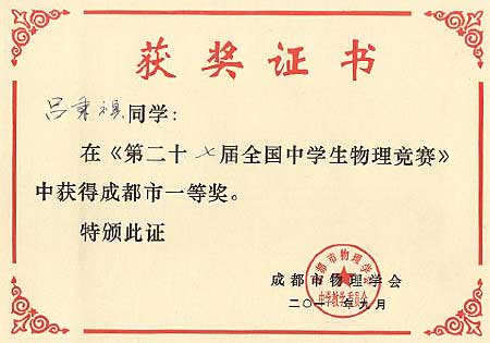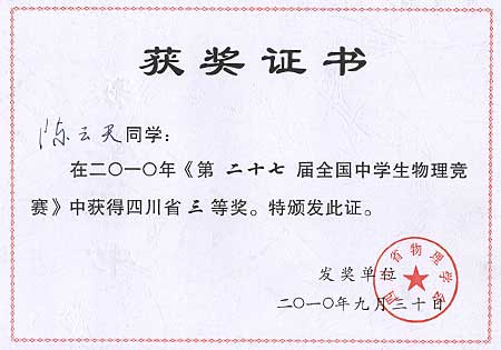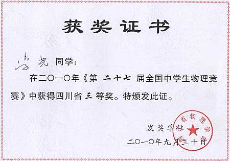 美視學子在第27屆全國中學生物理競賽中獲獎