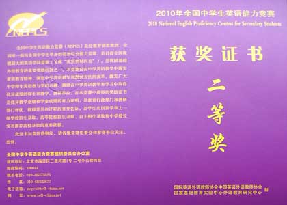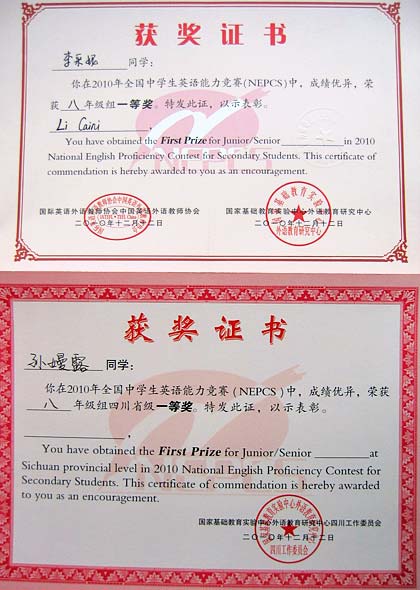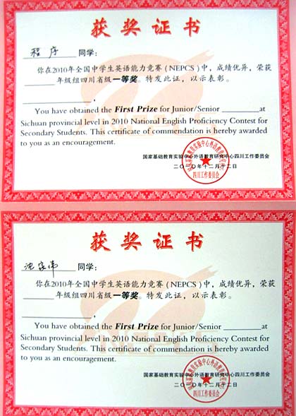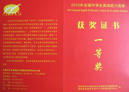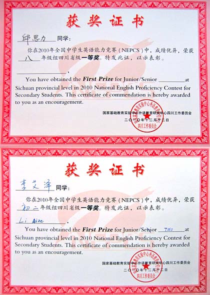 一等獎獲獎證書