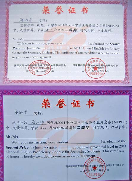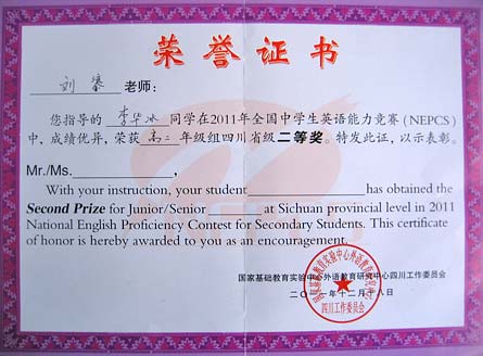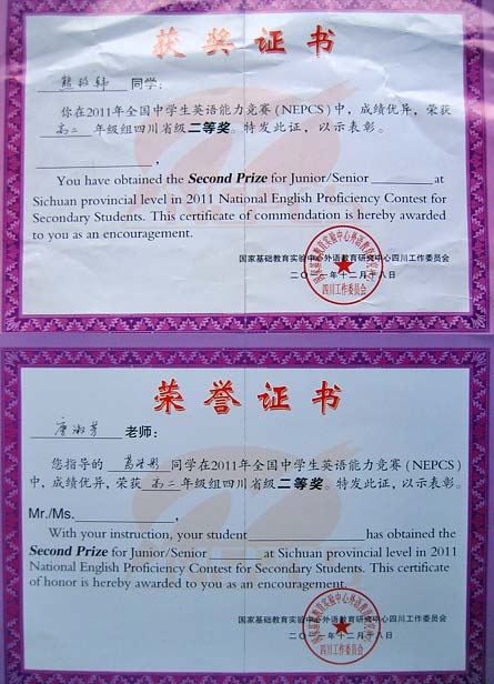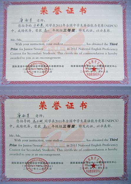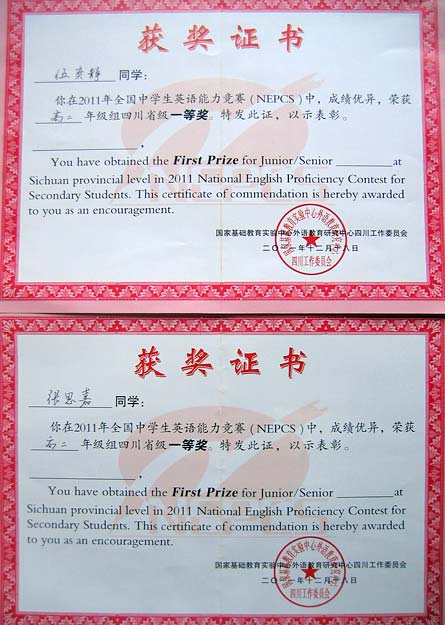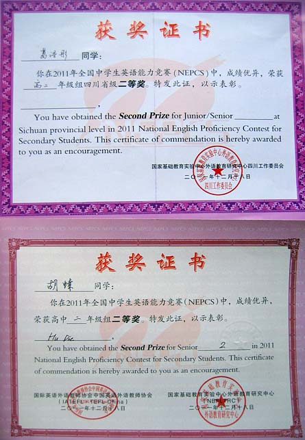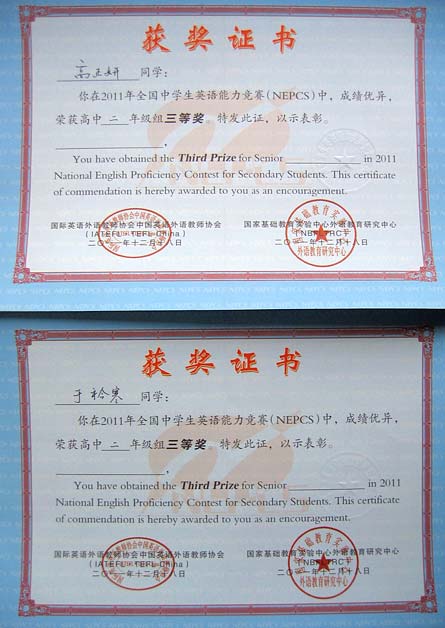 美視高中學子在2011年全國中學生英語能力競賽中獲得優異成績
