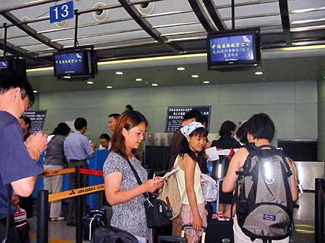 我校第一批參加赴美學(xué)習(xí)考察的教師準(zhǔn)備登機(jī) |