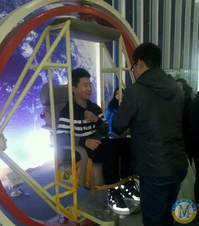 小伙子別緊張呀,放心體驗宇航員三維滾環(huán),這可是有專人把控的額,絕對安全,relax啦!