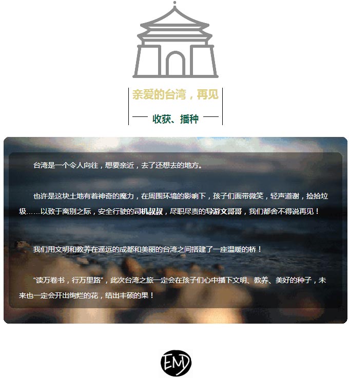 在初到臺(tái)北的第一天晚上,我們的老師就跟孩子作了約定——“我是國(guó)際小公民!我們是來(lái)自成都的最美的風(fēng)景線!”