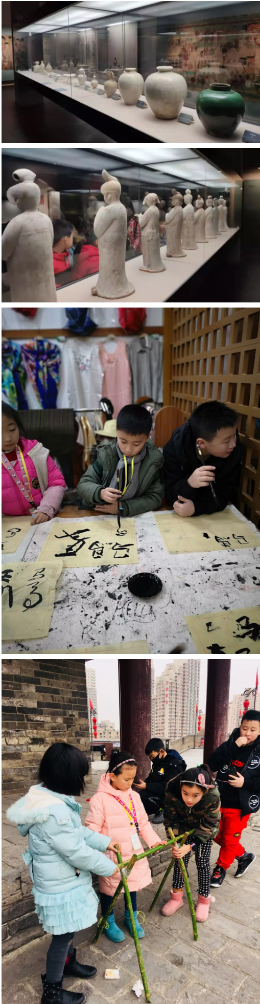 孩子們以城墻為景,傳軍令,寫馬炮,參觀碑林,體驗中華書法的博大精深。