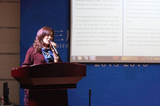 鐘山雨的媽媽作為學生家長代表與大家分享了初來美視學校的心情以及看到其他同學們和自己的孩子在這里一點一滴的成長而感到欣慰。她表達了對所有畢業生的祝愿,也表達了作為家長對所有老師以及對美視學校的感謝!