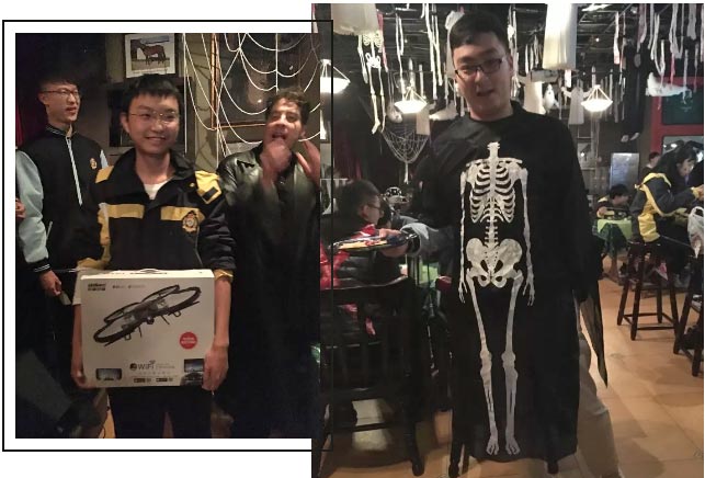 今年的第六屆中美英才班萬圣節(jié)慶祝活動(dòng)在校外舉辦。按慣例,萬圣節(jié)活動(dòng)往年都是在校內(nèi)舉行,但今年我們想帶來一些新意。同學(xué)們?cè)谝患冶蝗f圣節(jié)氛圍濃濃包圍的餐廳享用了一頓豐富的西方美食。在享受美食的同時(shí),我們也準(zhǔn)備了各類活動(dòng)為萬圣節(jié)助興。最后,被評(píng)為最佳萬圣節(jié)裝扮的同學(xué)以及在抽獎(jiǎng)環(huán)節(jié)中誕生的幸運(yùn)兒帶走了我們準(zhǔn)備的豐厚獎(jiǎng)品。最主要的是,同學(xué)們?cè)诨顒?dòng)中玩得非常開心!